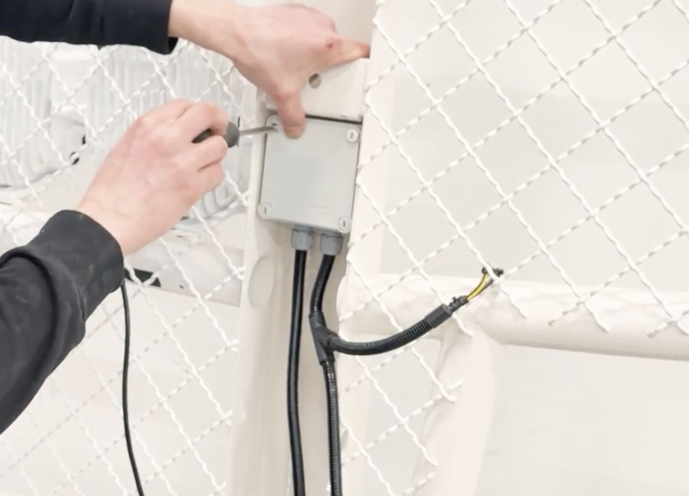 - Wiring kit connector holder: Welded holder in bracket for wiring kit connector.