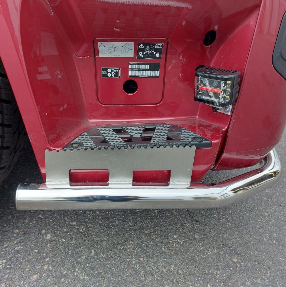 Fits leaf-sprung Actros 2.3 m models. For air-sprung versions, a similar front bumper bar is also available